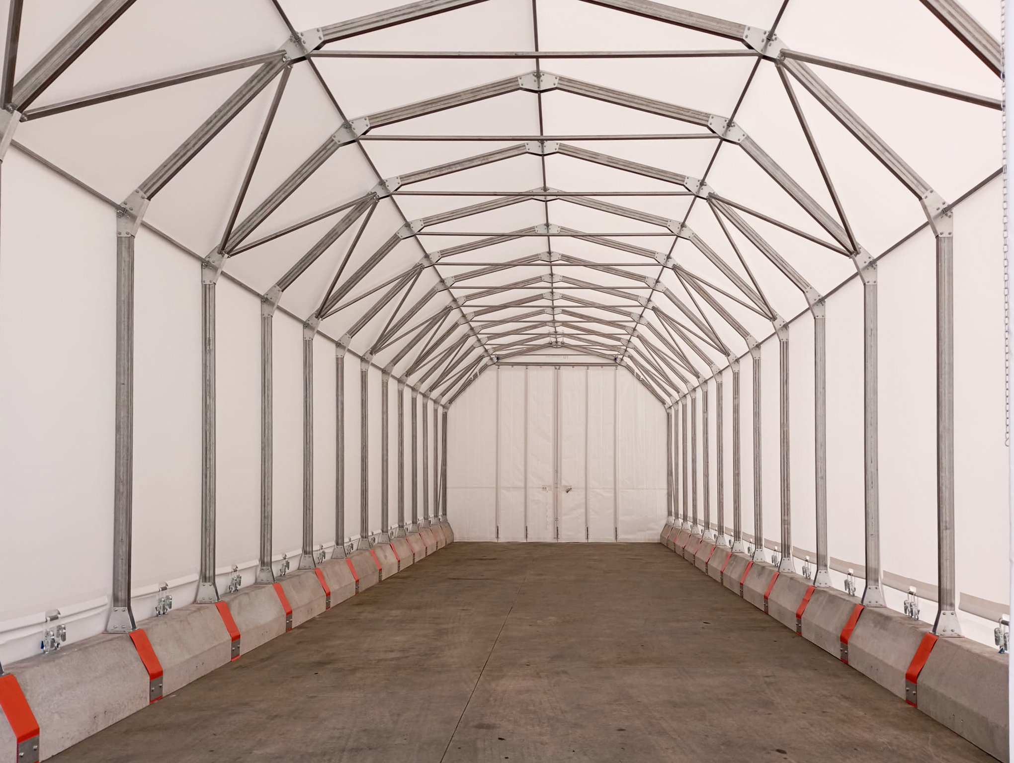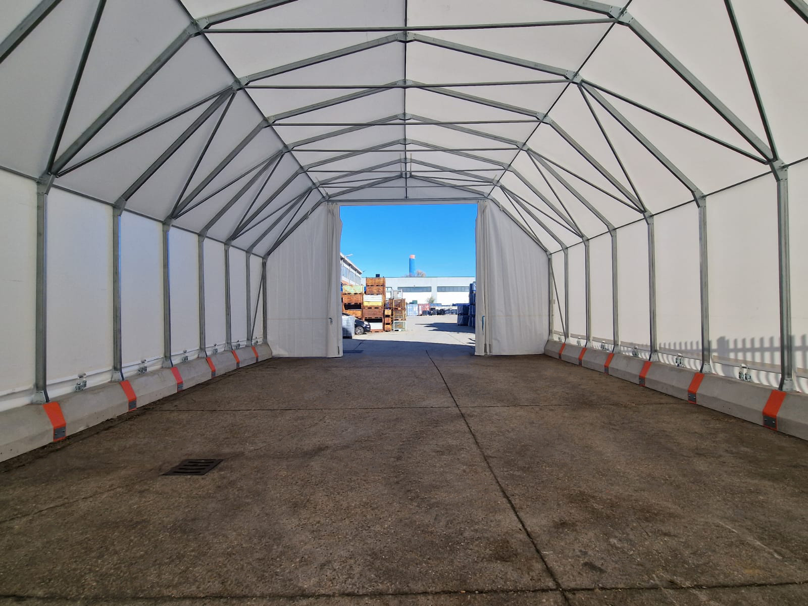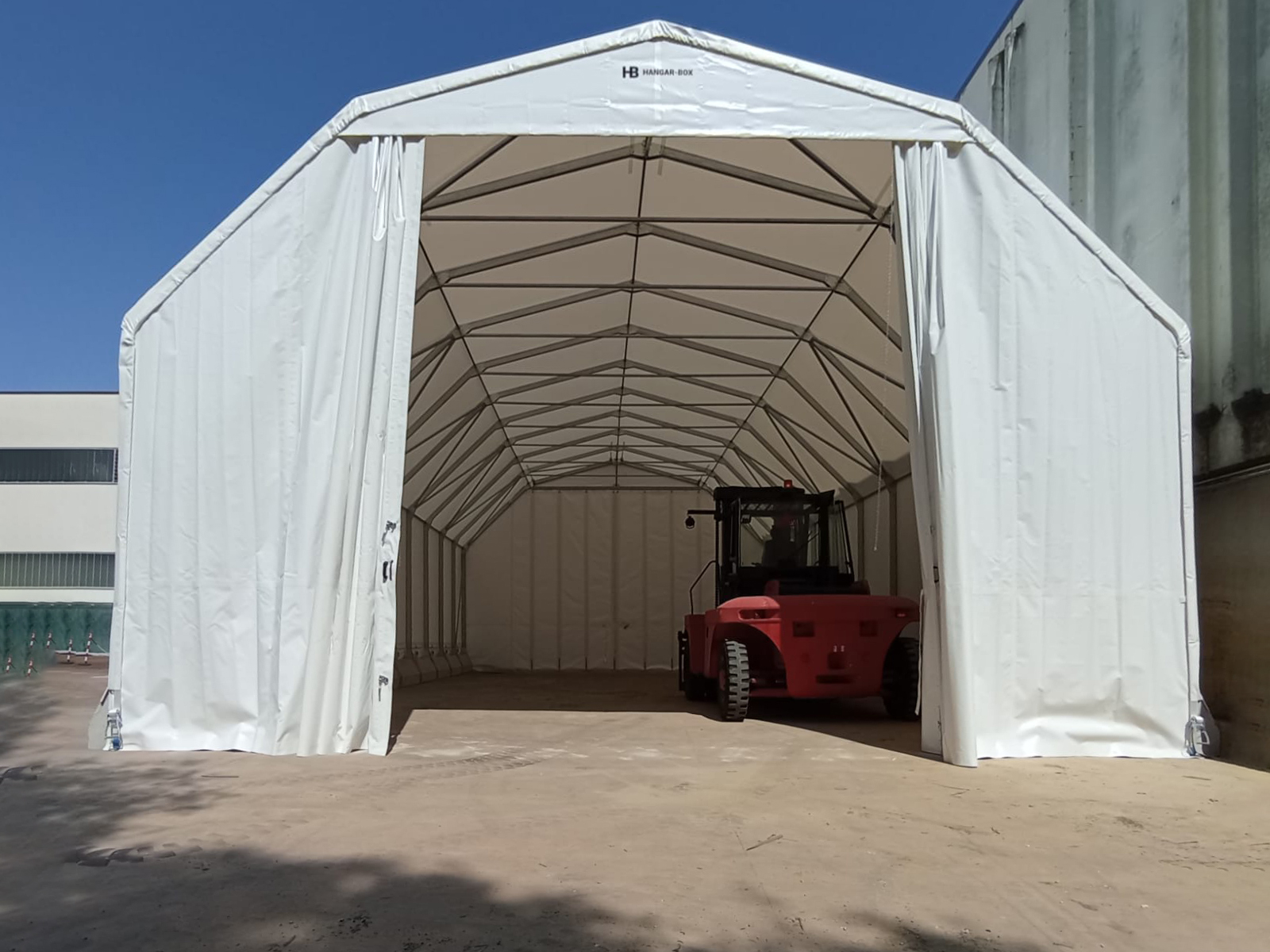 Il nostro Tunnel Hangar - Box è un tunnel mobile ideale per il deposito sicuro di attrezzature e merci. Questa soluzione innovativa è progettata per una rapida copertura e può essere installata su qualsiasi tipo di superficie, inclusi asfalto, cemento, piastrelle autobloccanti e terra di ghiaia.